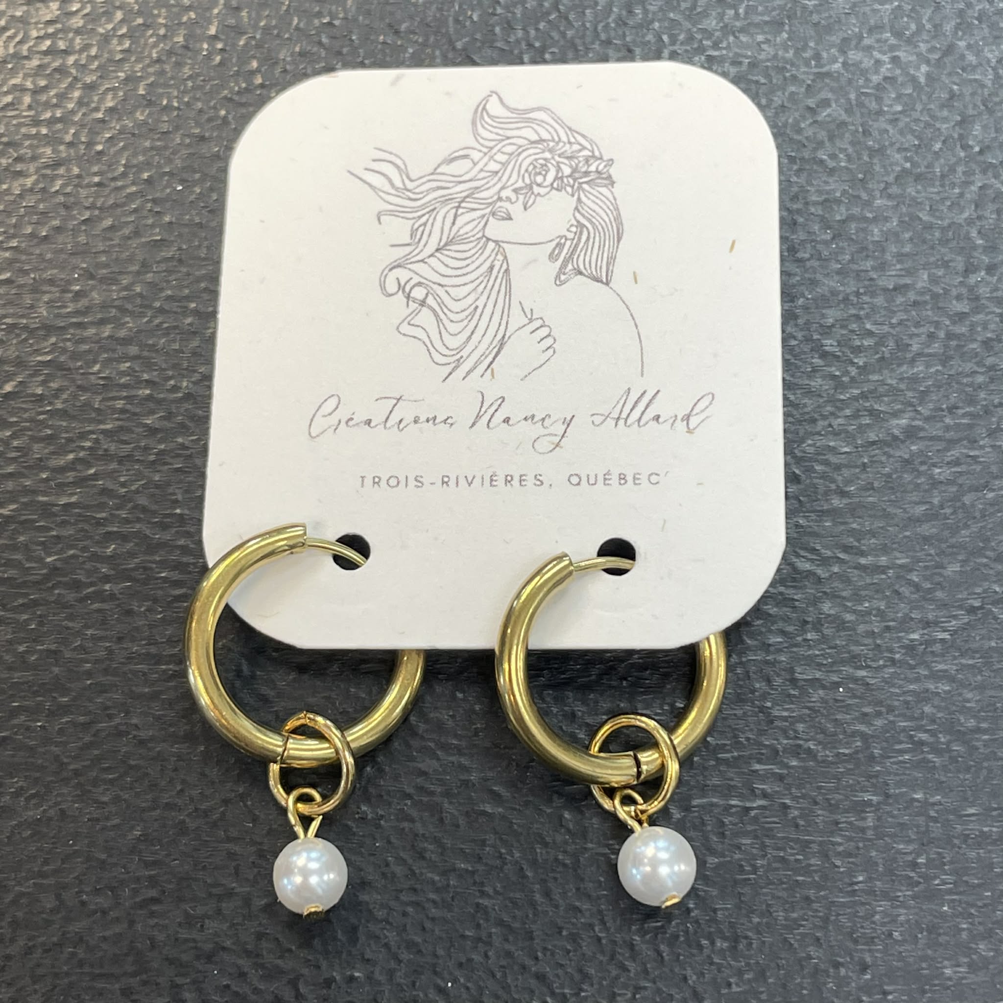 Boucles d'oreilles anneaux clic dorés avec perles #2 par Nancy Allard