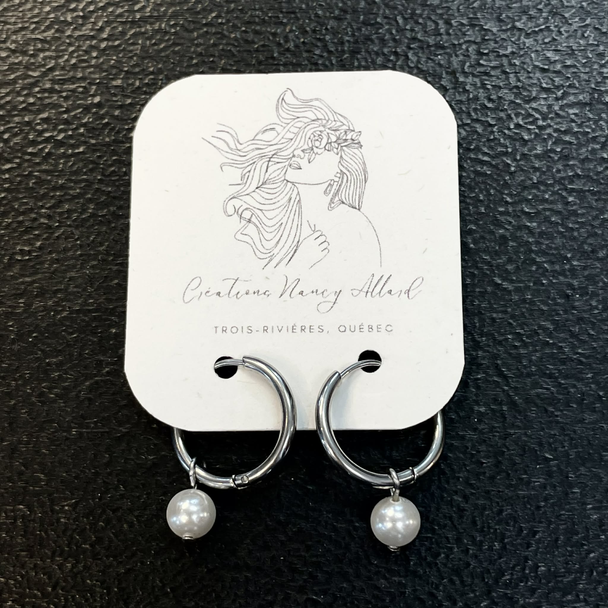 Boucles d'oreilles anneaux clic argent avec perles #1 par Nancy Allard (Copie)