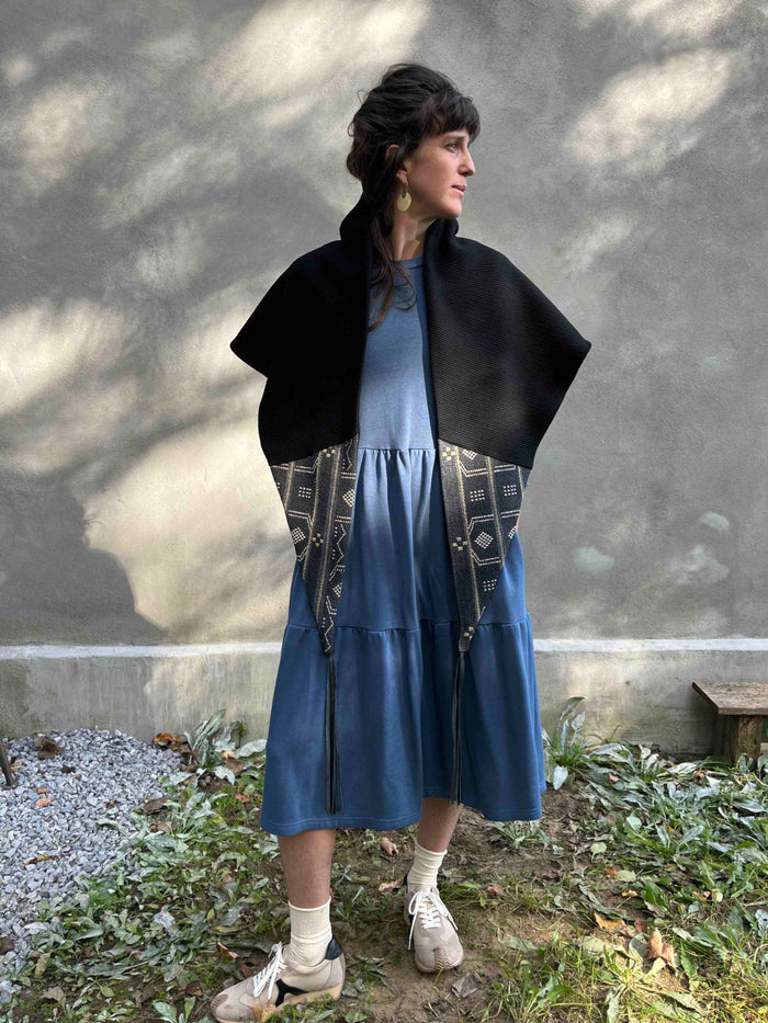 Peut aussi se porter en châle sur les épaules ou de diverses façons !