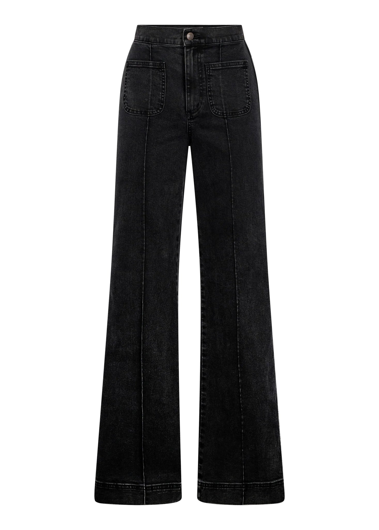 Marisol, un incontournable taille haute revisité en denim noir délavé de notre best-seller Ibiza. Avec ses poches plaquées audacieuses sur le devant et ses plis impeccables, ce jean à entrejambe de 30" est un clin d'œil chic aux costumes des années 70, parfaitement adapté à notre époque.