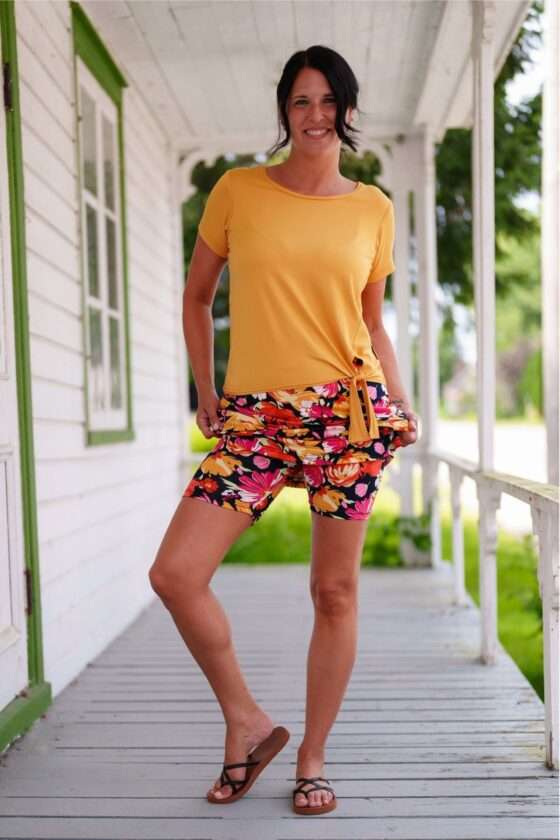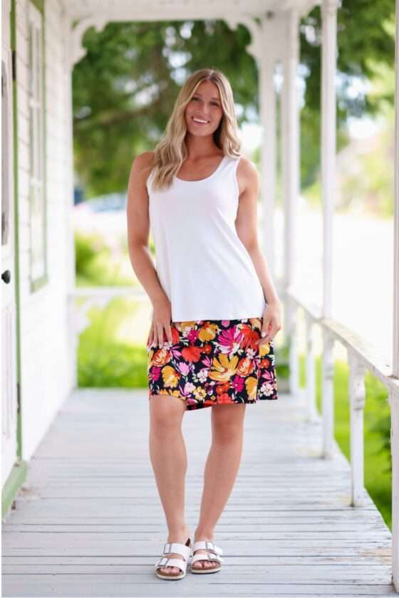 La jupe-cuissard cocktail est le bas parfait à porter avec notre t-shirt tropical ainsi que nos camisoles spritz et réversible. Avec son joli imprimé coloré, amusez-vous à la porter avec vos hauts unis et laissez-la être la vedette de votre tenue!