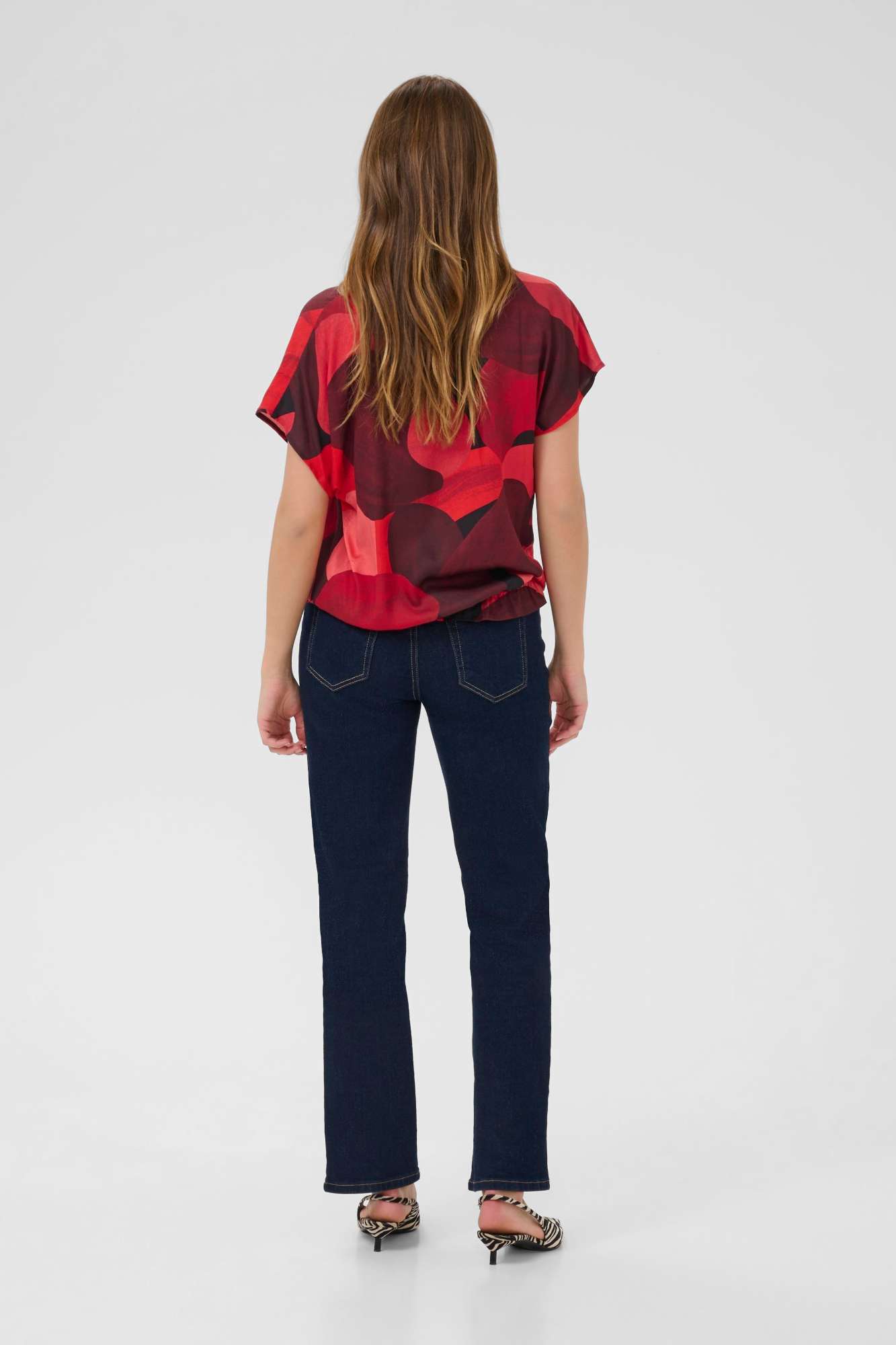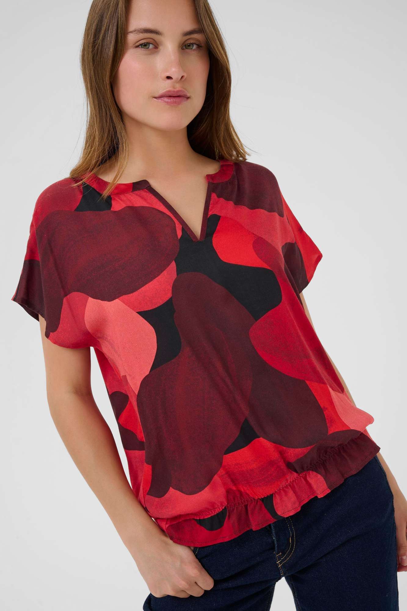 Blouse manches courtes avec élastique à la taille. Coupe ample.