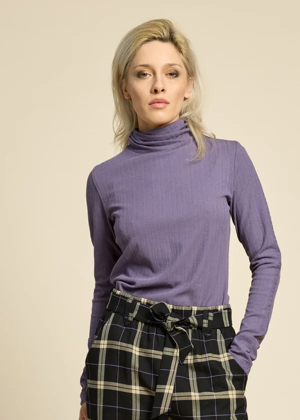 Un col roulé ajusté à avoir dans sa garde robe. A porter seul ou à glisser en dessous d'une robe ou d'un autre de vos hauts préférés pour changer le look. On aime son tissu rayé texturé en ton sur ton et sa bande qui crée un jeu de lignes sur la manche.