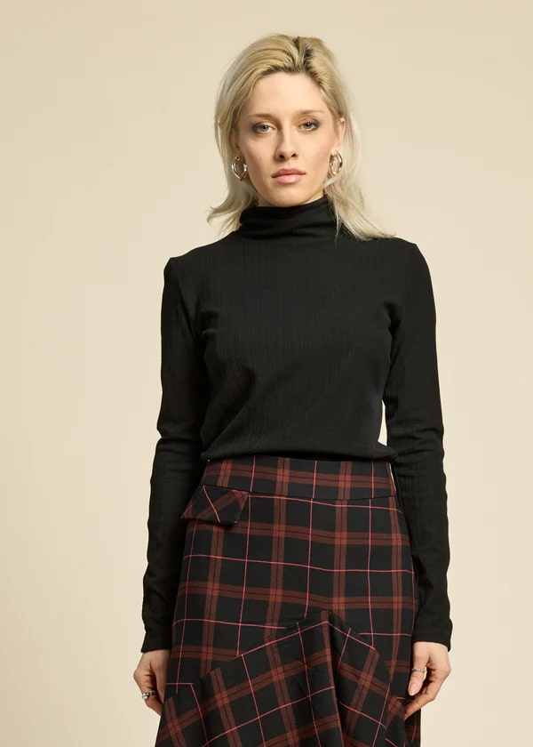 Un col roulé ajusté à avoir dans sa garde robe. A porter seul ou à glisser en dessous d'une robe ou d'un autre de vos hauts préférés pour changer le look. On aime son tissu rayé texturé en ton sur ton et sa bande qui crée un jeu de lignes sur la manche.